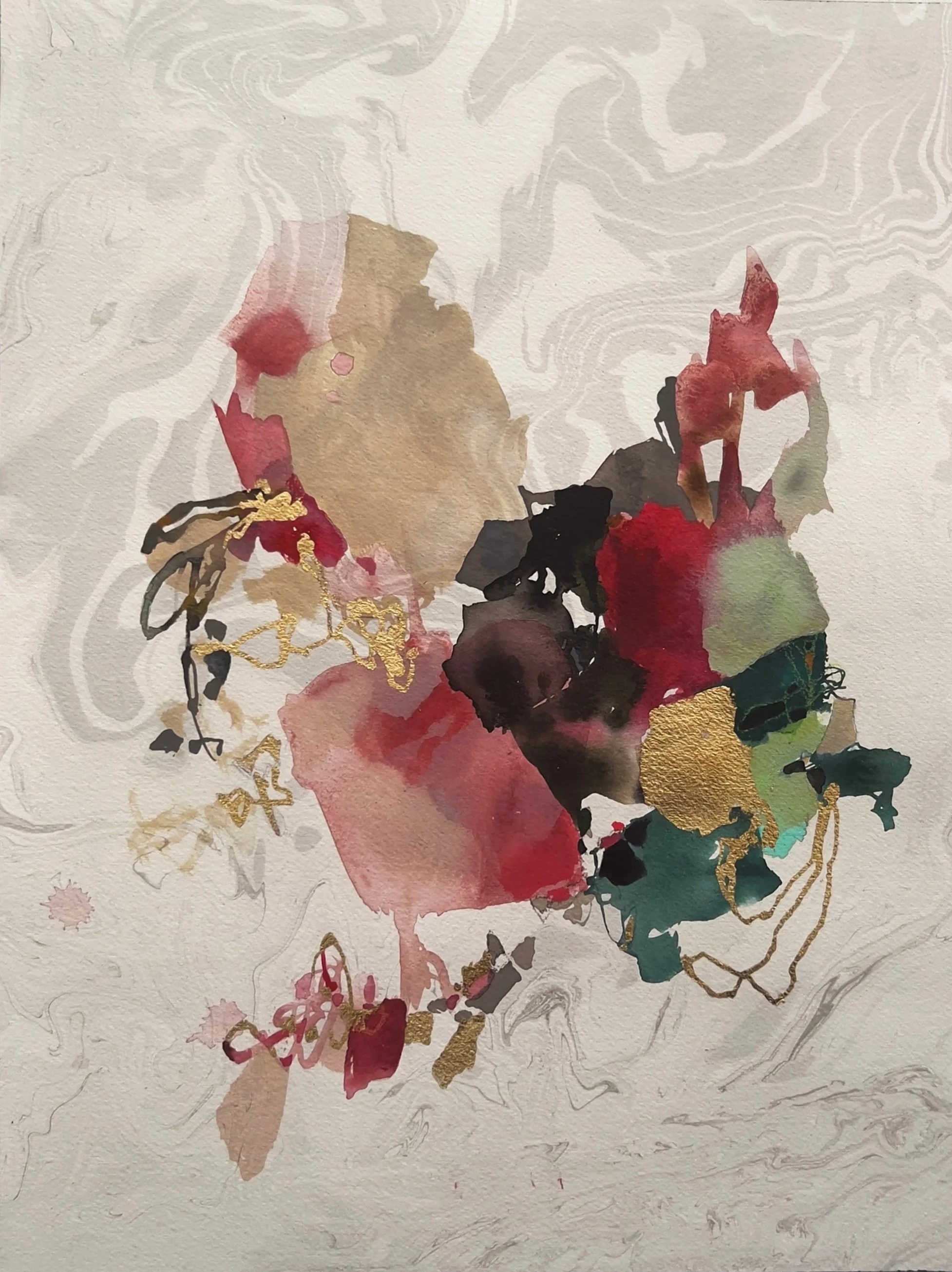 HEIRLOOM 3 acrylic, pencil, ink gold leaf on sumi ink marbled paper, framed17.25" x 21.25"$950 INQUIRE D E T A I L S See a painting in your space LEARN MORE BACK TO PAINTINGS